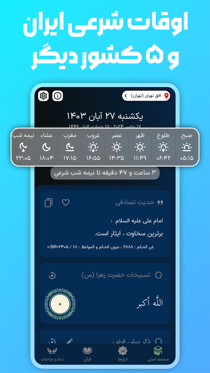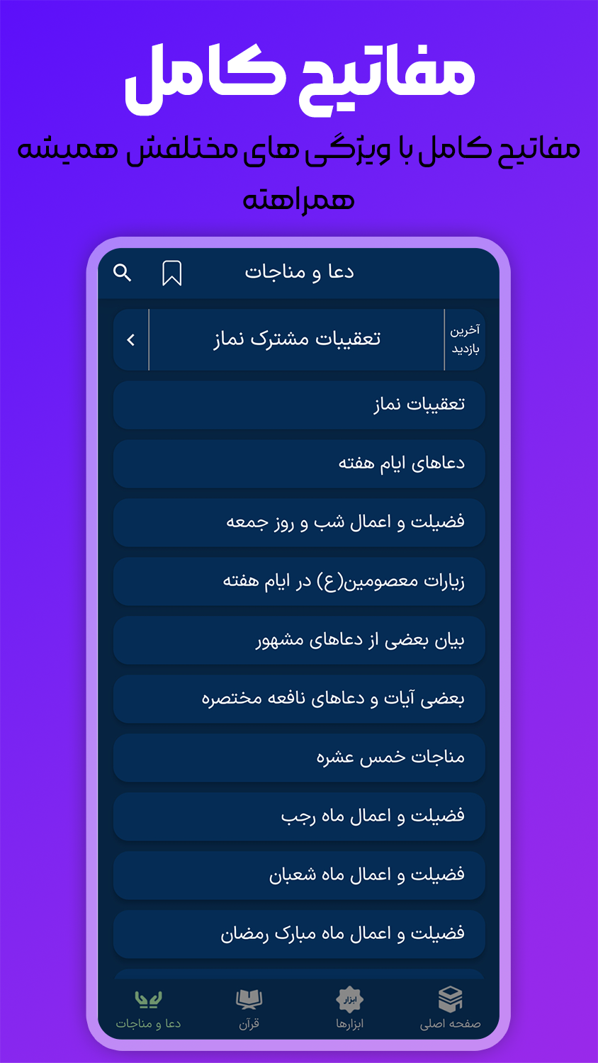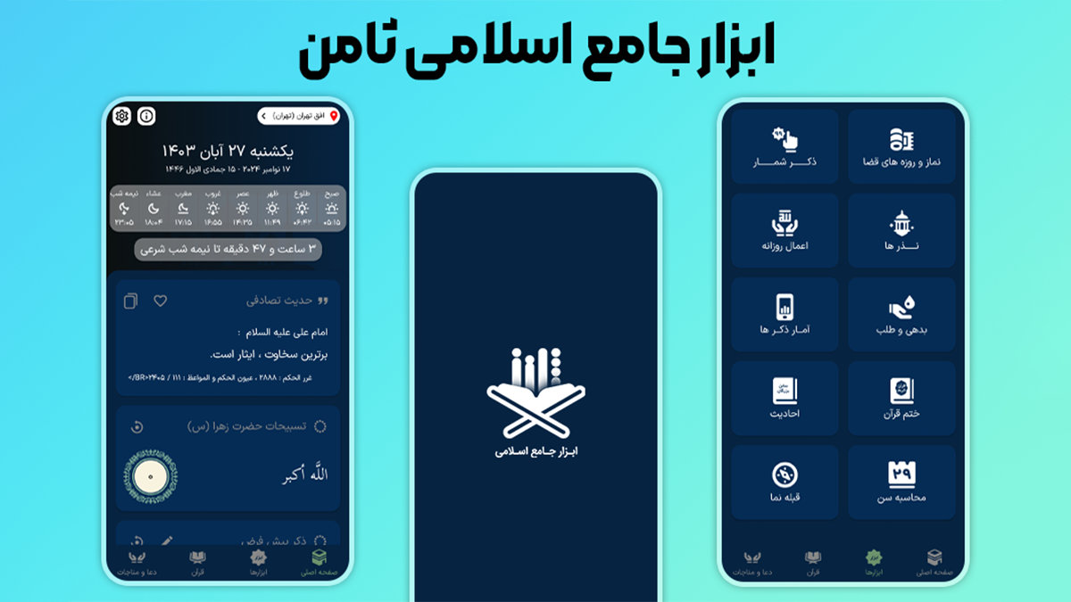 با ثامن ، قرآن و مفاتیح همیشه همراه شماست و یک ذکر شمار پیشرفته برای هر ذکری که دارید. اعمال روزانه با توجه به مفاتیح هر روز در دسترس شماست